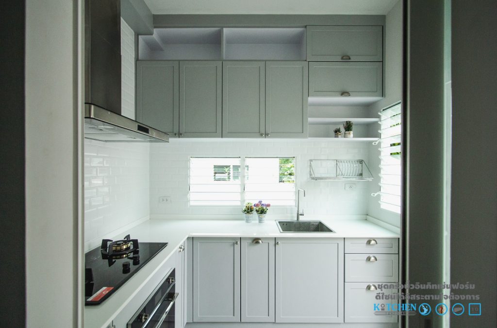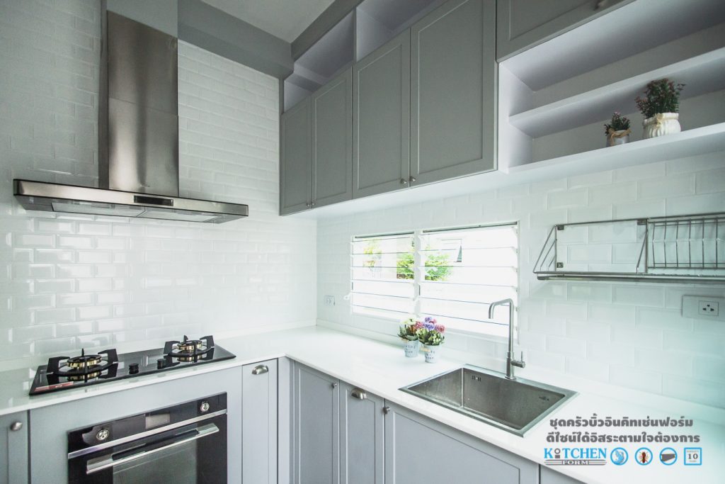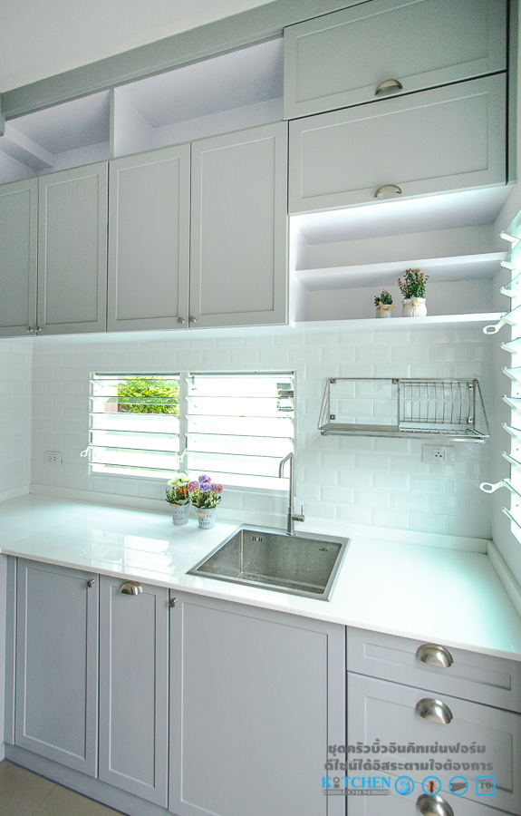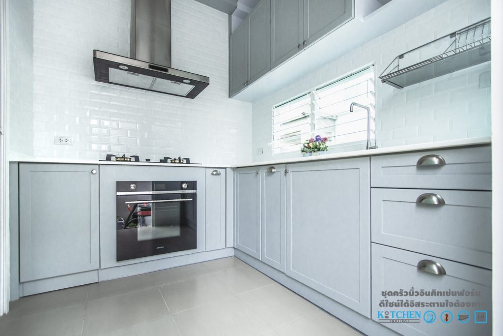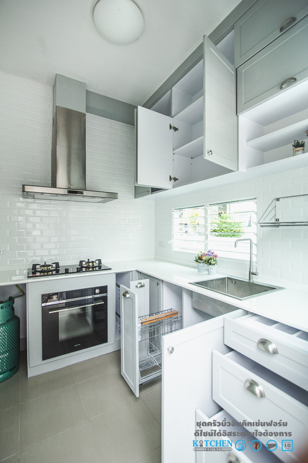 โดยชุดครัวชุดนี้เป็นของคุณอนุสรณ์ สาน้อย ตั้งอยู่ที่ โครงการพฤกษ์ลดาประชาอุทิศ90 โดยการตกแต่งของชุดครัวชุดนี้จะให้อารมณ์ที่เรียบง่าย ดูสุขุม ทั้งดีไซน์และโทนสี รูปทรงในการออกแบบในครั้งนี้ทางดีไซน์เนอร์ของ Kitchen Form ได้ออกแบบมาในลักษณะของชุดครัวรูปตัว L (L-shape) โดยชุดครัวของคุณอนุสรณ์ จะเรียกได้ว่าเป็นชุดครัวที่ค่อนข้างเล็กเลยทีเดียว แต่ต้องบอกเลยว่า เห็นเล็กๆแบบนี้ ความสะดวกสบายในการใช้งาน และช่องเก็บของต่างๆ ไม่ได้น้อยลงเลยล่ะครับ